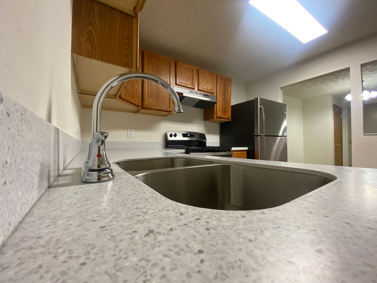 Welcome to our newly renovated 2 bedroom, 1 bathroom apartment in Harrison, OH. This cozy home features a walk-out patio with a privacy fence, perfect for enjoying the outdoors in peace. The apartment has been recently upgraded with new flooring, countertops, stainless steel appliances, and other modern finishes throughout. Located in a convenient area, this apartment is ideal for those looking for a comfortable and stylish living space. This apartment has a convenient no-step entry. There is a community laundry room on the second floor of the building. Contact us today to make this apartment your new home!